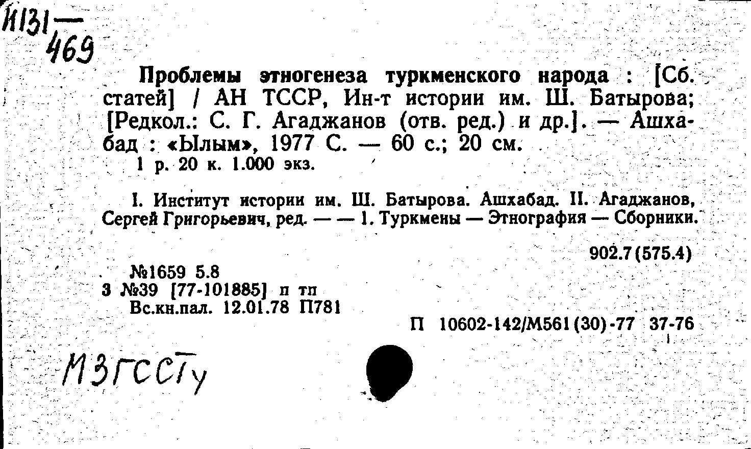 есть ли в фондах библиотеки книга "Проблемы этногенеза туркменского народа",